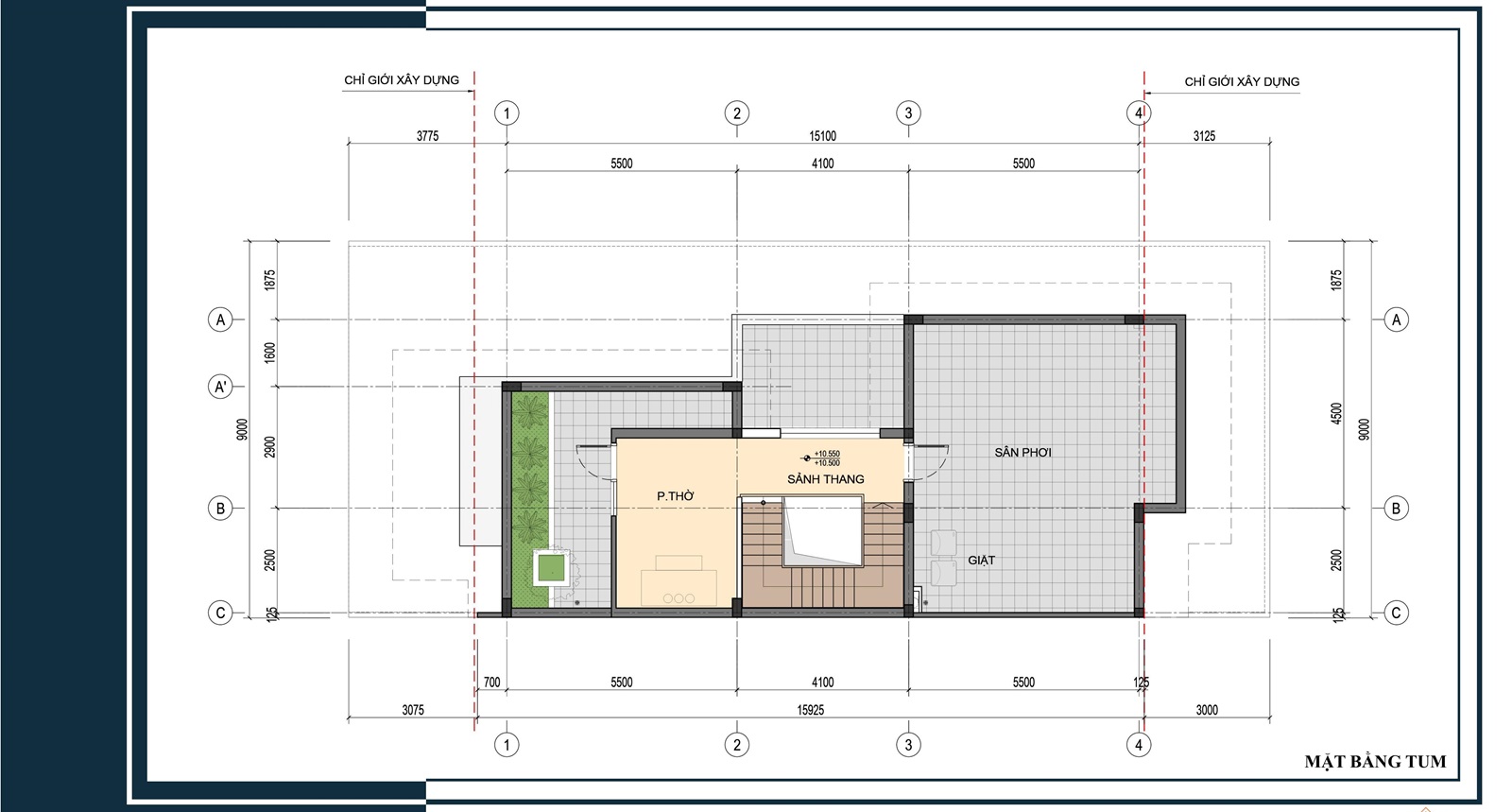 Thiết kế: 3 tầng + 1 tum, nhà 2 mặt tiền - đường trước nhà, sau nhà là vườn hoa công viên rất thoáng đẹp.