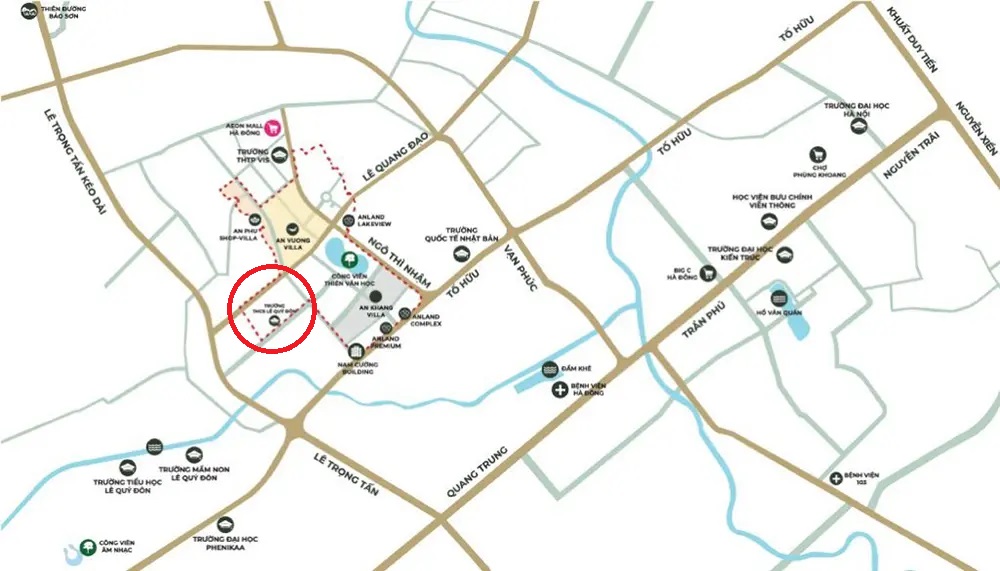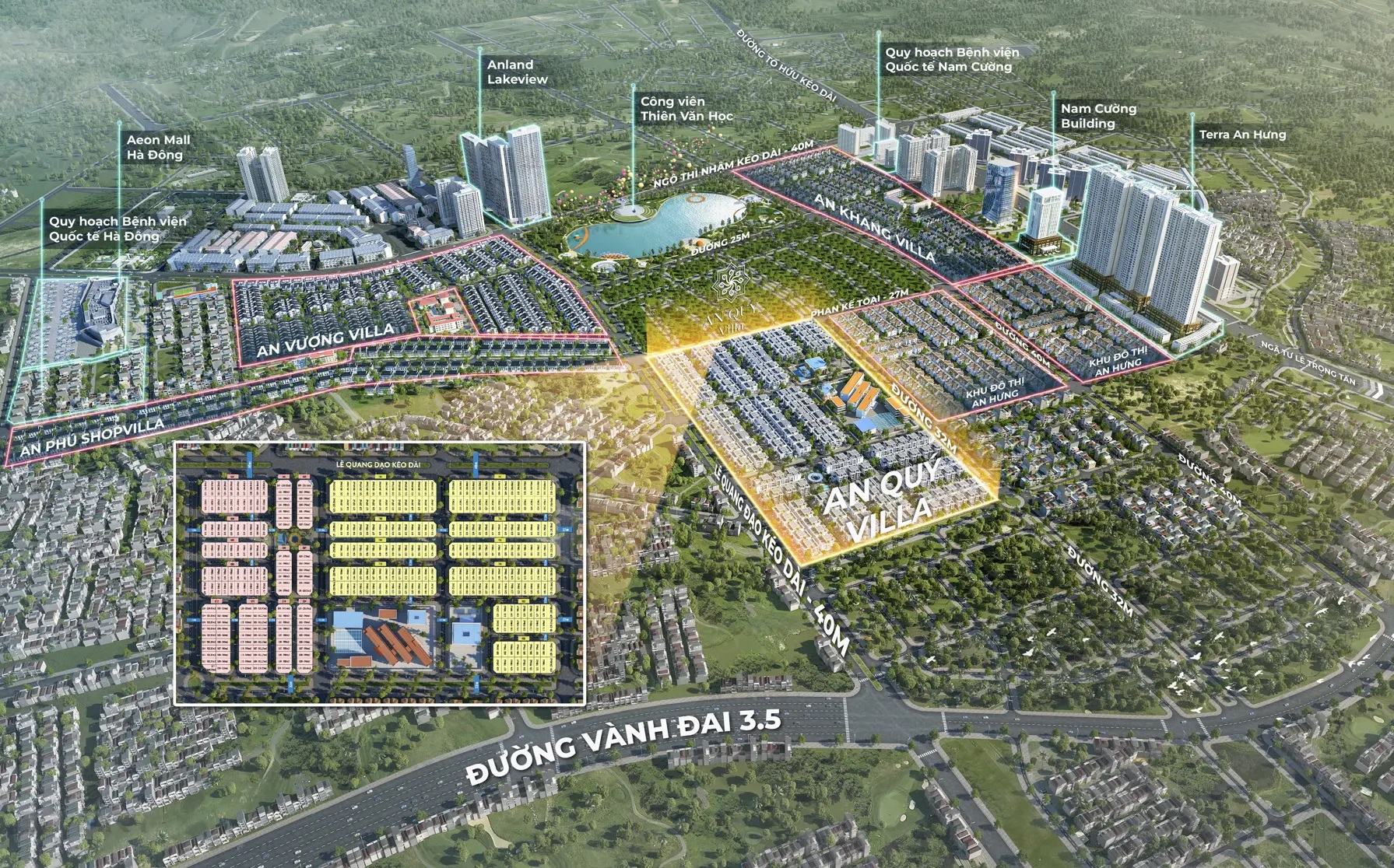Biệt thự An Quý Villa tọa lạc ngay trung tâm khu đô thị Dương Nội, sở hữu vị trí thuận tiện – cửa ngõ phía Tây Thủ đô, kết nối nhanh chóng tới 5 quận lớn qua các tuyến đường huyết mạch: Lê Trọng Tấn, Tố Hữu, Ngô Thì Nhậm, Lê Quang Đạo kéo dài...
